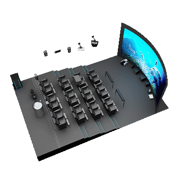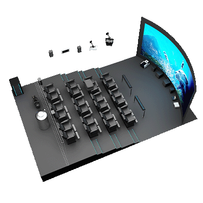 5D影院由三部分組成:立體投影系統(tǒng);振動座椅和特效設(shè)備;計算機(jī)控制系統(tǒng)。這三者的協(xié)同作用形成一個系統(tǒng),刺激觀眾的視覺、聽覺、觸覺和感官,再現(xiàn)電影主題所涉及的環(huán)境、環(huán)境中的各種細(xì)節(jié)、讓觀眾感受身臨其境的整體效果。
