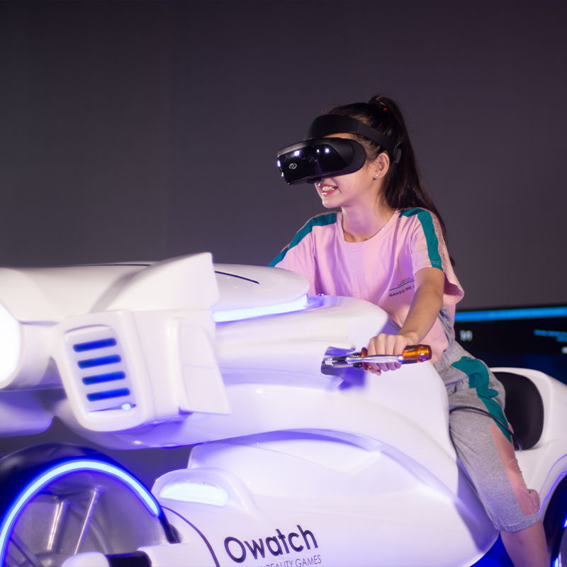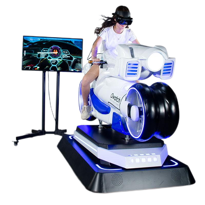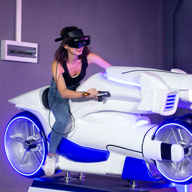 采用獨創的動作捕捉系統,32英寸的無輪轂車輪、OLED光帶,結合時下最具科技感的虛擬現實技術,超強的爆發力和性能帶來史無前例的變駛體驗.結合自主設計的游戲內容,光影摩托車直正將視覺, 聽覺和動感完美地為一體。玩家身臨其境地感受前所未有的驚奇刺激